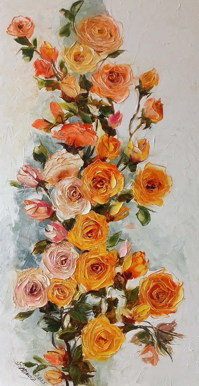 Este ulei pe panza, dimensiune 100cmx50cm,tehnica in cutit. Semnat